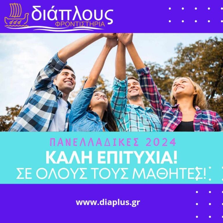 Όλοι οι καθηγητές σας και το προσωπικό του φροντιστηρίου ΔΙΑΠΛΟΥΣ αναγνωρίζουν τις θυσίες σας, την υπέρβαση του καθενός ξεχωριστά και είναι περήφανοι για όλους σας και σίγουροι για την επιτυχία σας!