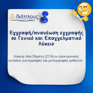 Σημείωση: Για περισσότερες πληροφορίες, συνιστάται η παρακολούθηση των επίσημων ανακοινώσεων του Υπουργείου Παιδείας.