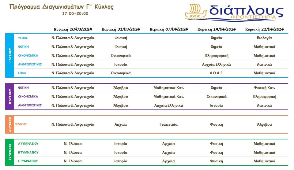 Πρόγραμμα Διαγωνισμάτων – Β’ Κύκλος