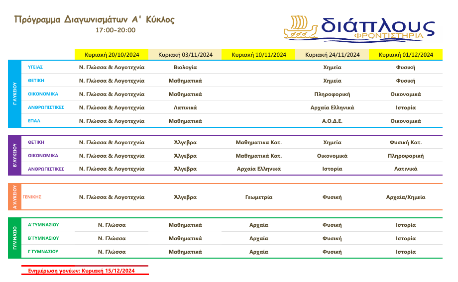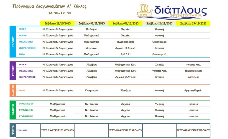 Ο Α’ Κύκλος Διαγωνισμάτων στο ΔΙΑΠΛΟΥΣ αποτελεί ένα σημαντικό βήμα στην πορεία προετοιμασίας των μαθητών μας.